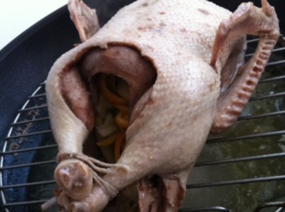 When I opened the wrapping, I found (to my gratitude) that it had actually been cleaned quite thoroughly. The cavity was cleaned out nicely, although the neck and a little white plastic bag – which I assumed contained gizzards and the heart – had been placed back in it. I wasn’t really keen on finding out what was actually in the bundle. Through the translucent plastic, I could tell it was a deep red colour. There was also a bloody liquid leaking out of it and that was enough for me to decide to toss it into the bin. It was already pretty late. I was quite tired after a day of working in the kitchen, followed by washing and cleaning up the place, and then Christmas Eve dinner (which I’d helped cook as well) at my parents’. So really, a bloody bundle-of-whatever was of no interest to me at the time. I know that some people use these innards to make turkey stock, but I wasn’t keen on trying. I don’t like innards, you see. I don’t mind Tur Huang Kiam Chye Tng (Pork Innard and Salted Vegetable Soup), but I don’t actually eat the innards. And I ask for only pork belly meat when I order Kway Chap. Heck, I’m not even a big fan of foie gras. Well, okay, the first two bites may be capable of transporting me to heaven, but from the third mouthful onwards, it invariably gets difficult. So I am always guilty of wasting good foie gras. Yes, people like me should not even be allowed to order foie gras. But back to the turkey, I am curious if it’s the norm to make stock from these turkey innards for the gravy, or whether it is just customary to leave those parts in.